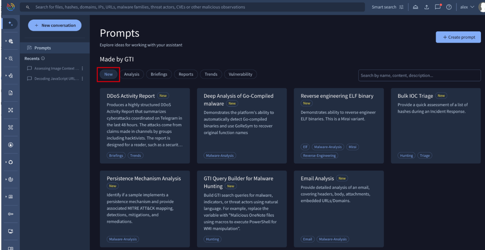 We have significantly expanded our Agentic Prompt Template library to automate increasingly complex investigative workflows. This update introduces specialized templates for Deep Analysis of Go-Compiled Malware and Reverse Engineering ELF Binaries, alongside advanced tools for Persistence Mechanism Analysis and Bulk IOC Triage. Additionally, researchers can now leverage a dedicated GTI Query Builder for Malware Hunting and generate comprehensive DDoS Activity Reports.