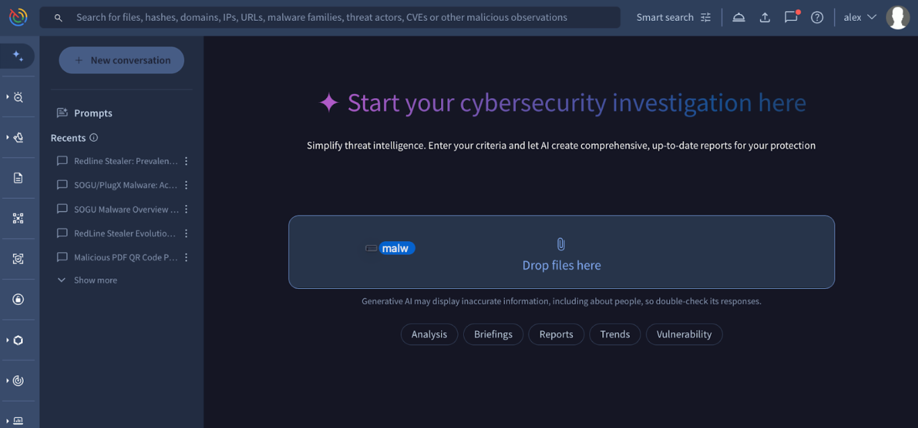 💪 Seamless File Integration for Agentic Context. Agentic is an AI-powered analysis interface built to automate complex investigative workflows. By leveraging specialized agents with direct access to Google Threat Intelligence datasets and analysis engines, users can rapidly summarize threats and pivot through malicious infrastructure.