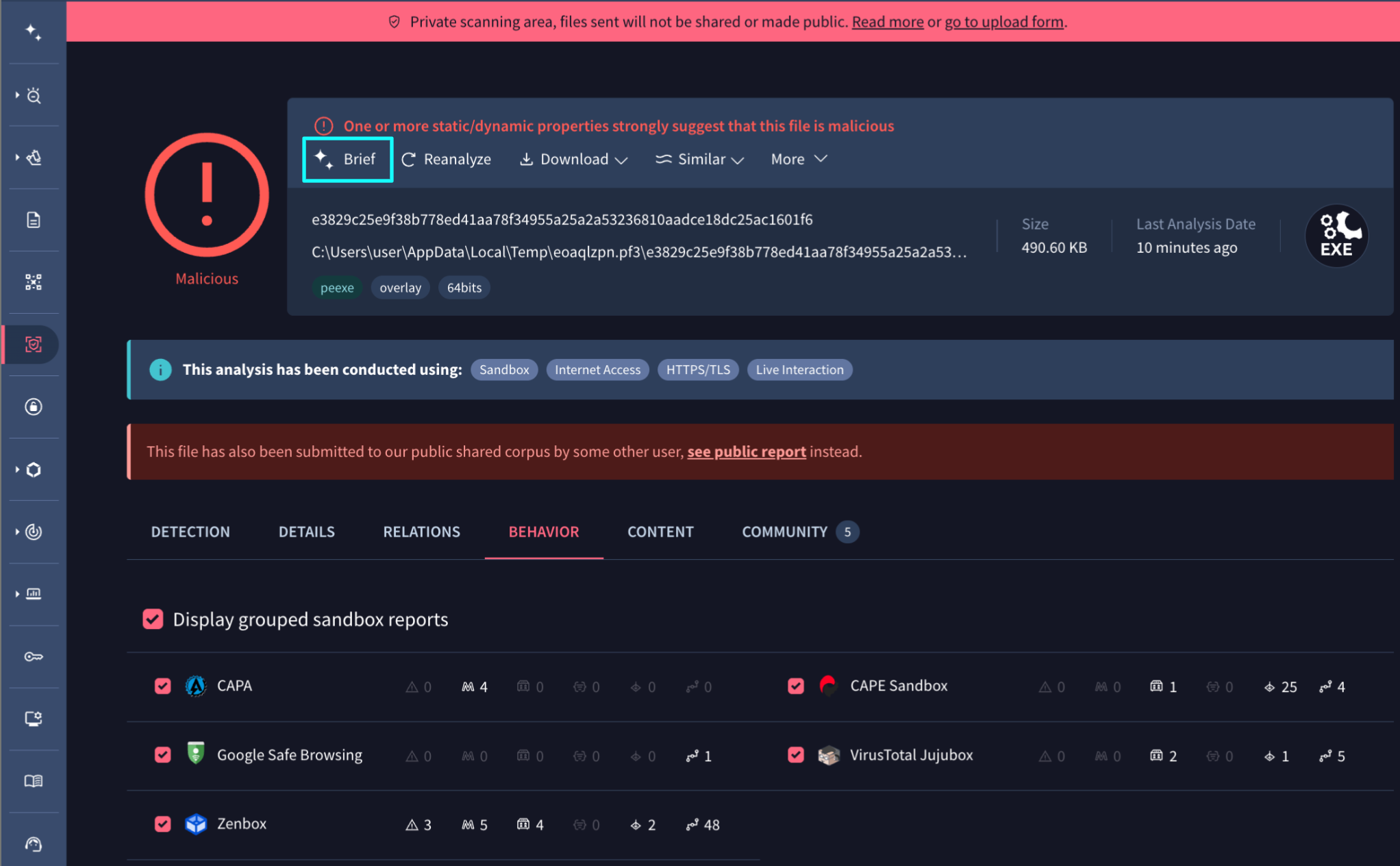 🆕 Enhanced Private Scanning: Clipboard Keystroke Injection. Private Scanning provides a dedicated, isolated environment for analyzing files and URLs. This ensures that Indicators of Compromise (IoCs) and their reports remain strictly confidential and are never shared with the public community.