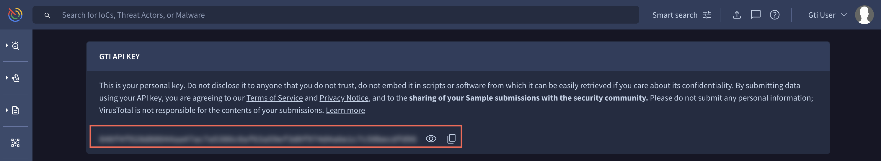For customers who wish to use the legacy Mandiant Threat Intelligence integrations with their Google Threat Intelligence License key, they can use the following steps. The legacy integrations use Mandiant Threat Intelligence basic auth, which expects and api_key and api_secret, which must be updated to use the Google Threat Intelligence license key.