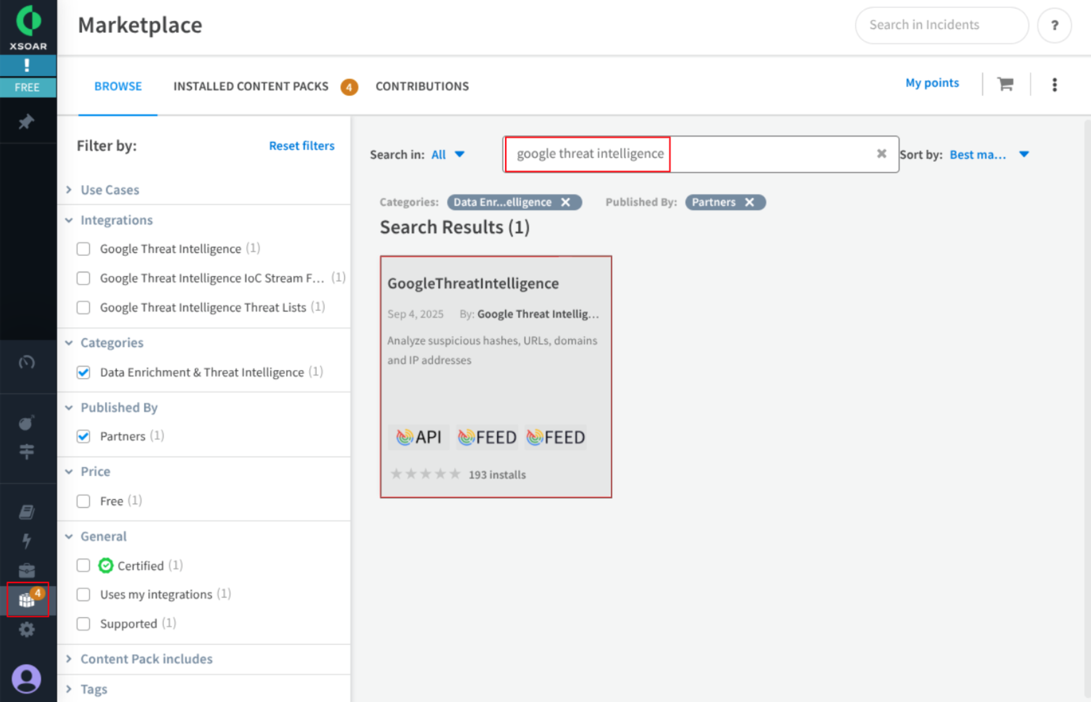 - Log in to the XSOAR platform and navigate to the Marketplace in the left menu.