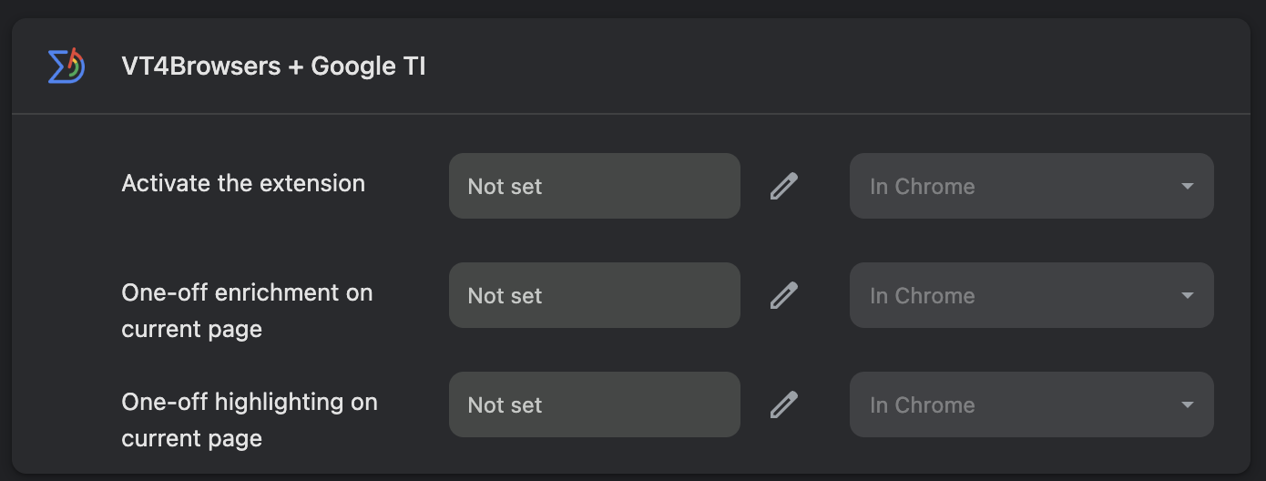 Note for non-Google Threat Intelligence usersIf you do not have a valid Google Threat Intelligence (GTI) API key, please refer to the general VT4Browsers documentation for the correct setup instructions.