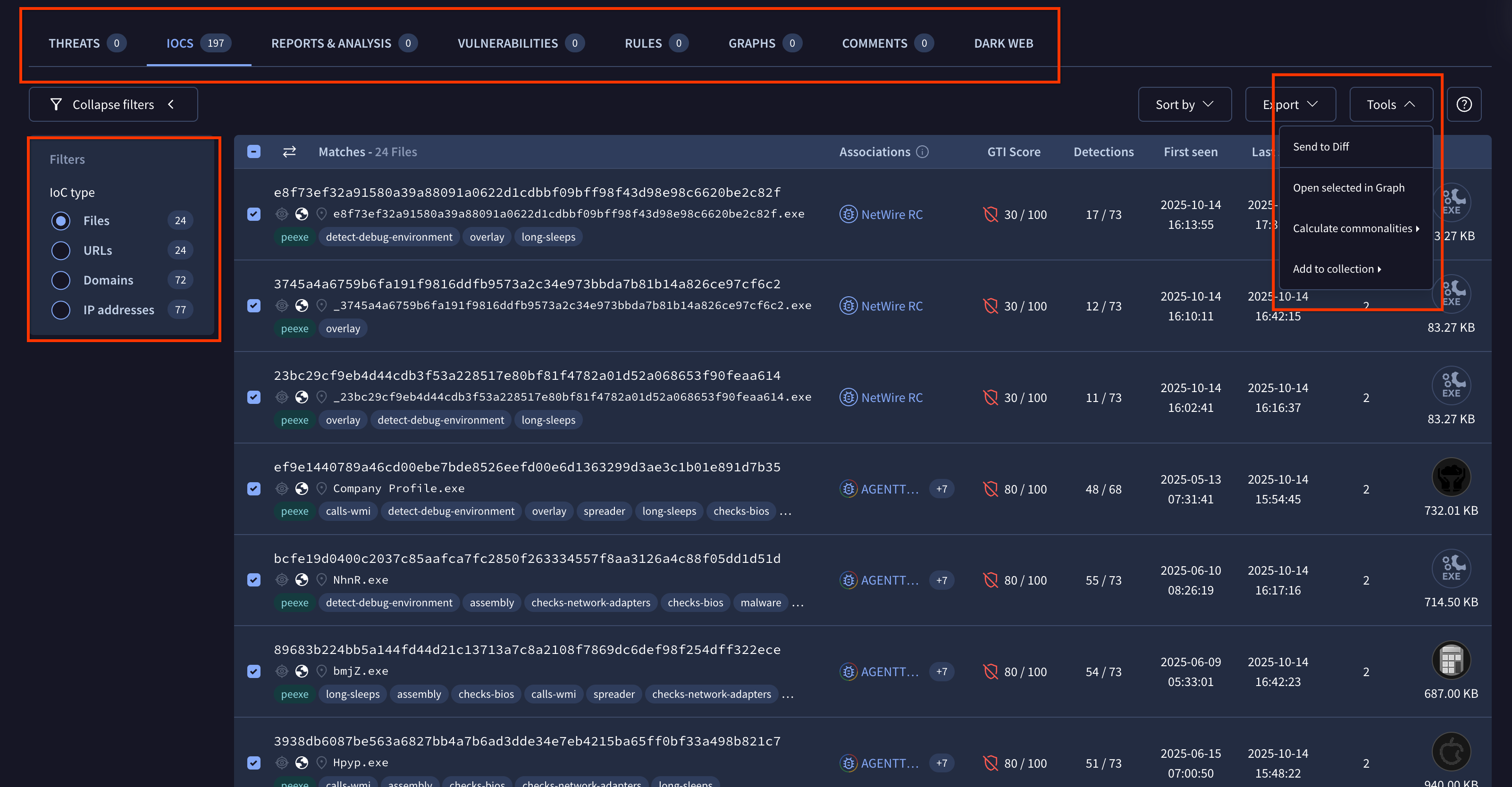 Filter IoCs: You gain granular control over the data displayed by selecting which types of IoCs (Hashes, IPs, Domains, etc.) are relevant to you.