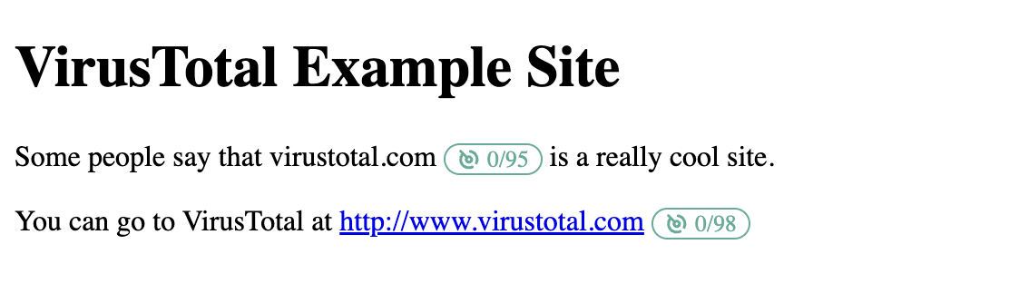 - Action on Page Load: VT4Browsers identifies all IoCs on the page and then automatically queries the API for each one.